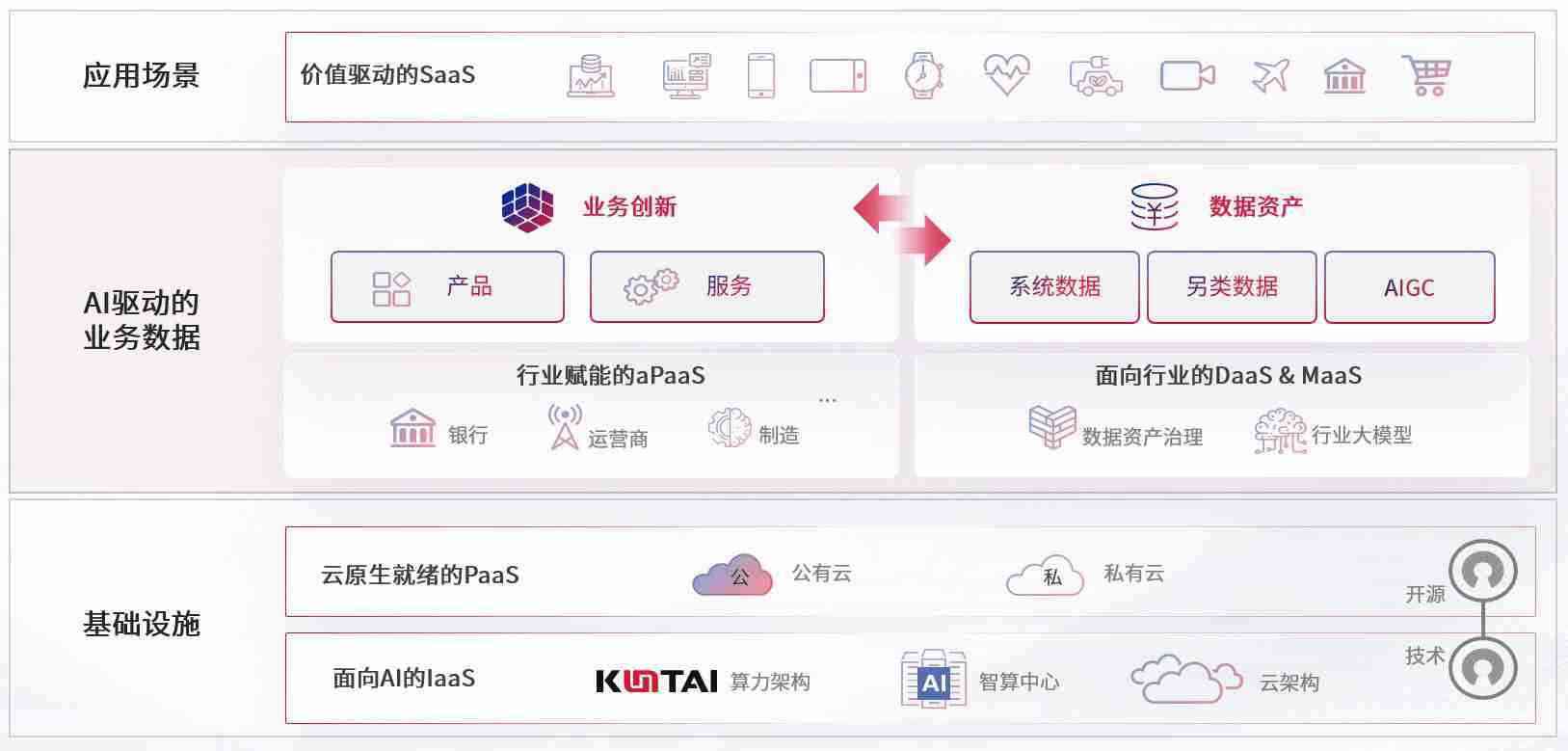 数字时代,,,,围绕企业数字化转型的关键要素,,NO钱包数码开创性的提出数云融合战略和技术体系框架,,,,着力在云原生、、、、数字原生、、、、AI原生和信创产业上架构产品和服务能力,,为处在不同数字化转型阶段的快消零售、、、、汽车、、金融、、、、医疗、、政企、、、教育、、运营商等行业客户提供泛在的敏捷IT能力和融合的数据驱动能力,,构建跨界融合创新的数字业务场景和新业务模式,,,助力企业级客户建立面向未来的核心能力和竞争优势,,,全面推动社会的数字化、、智能化转型升级。。